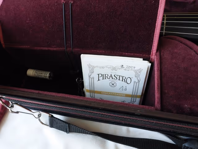 Durch eine Schenkung waren drei Gamben in den Besitz des Landesjugendbarockorchesters Baden-Württemberg gekommen, von denen die letzte hier noch zum Verkauf steht.