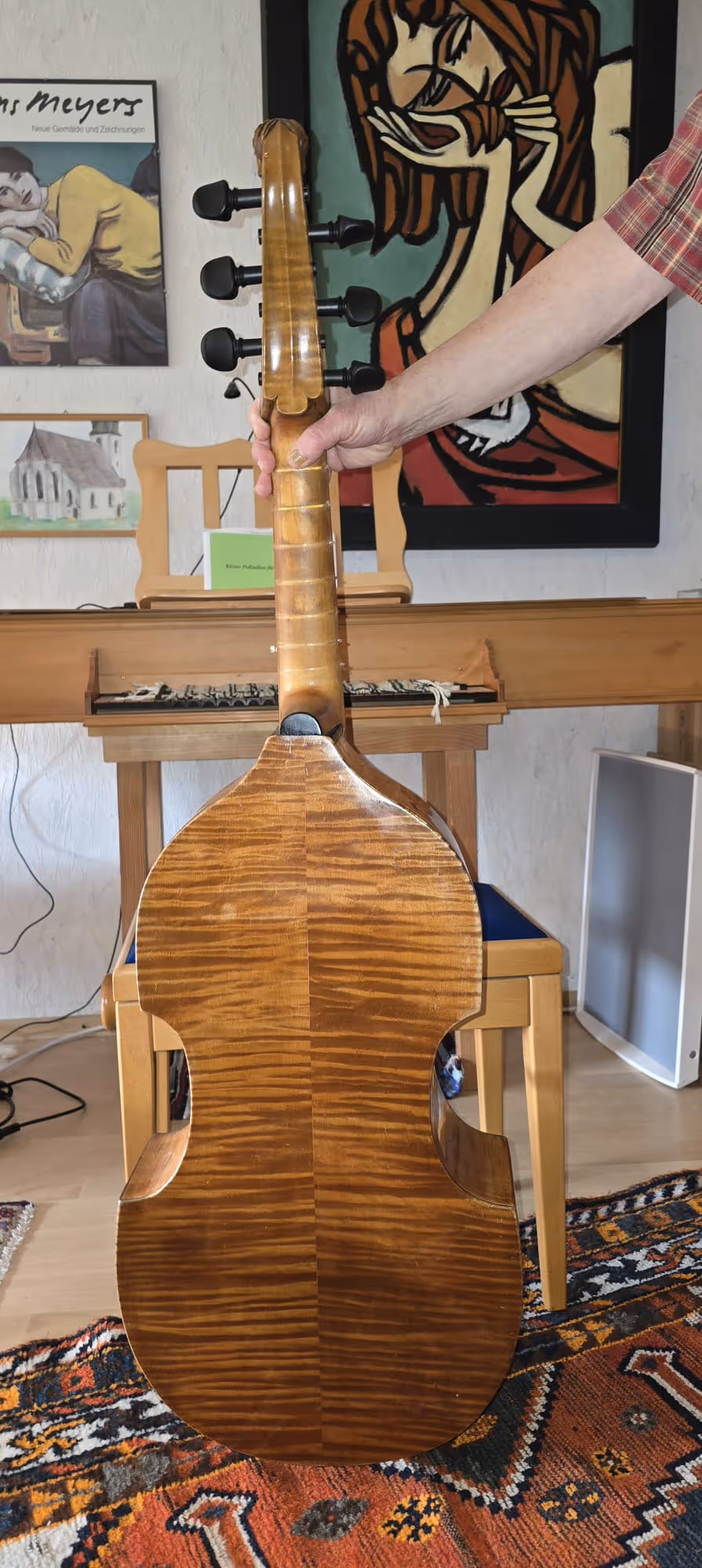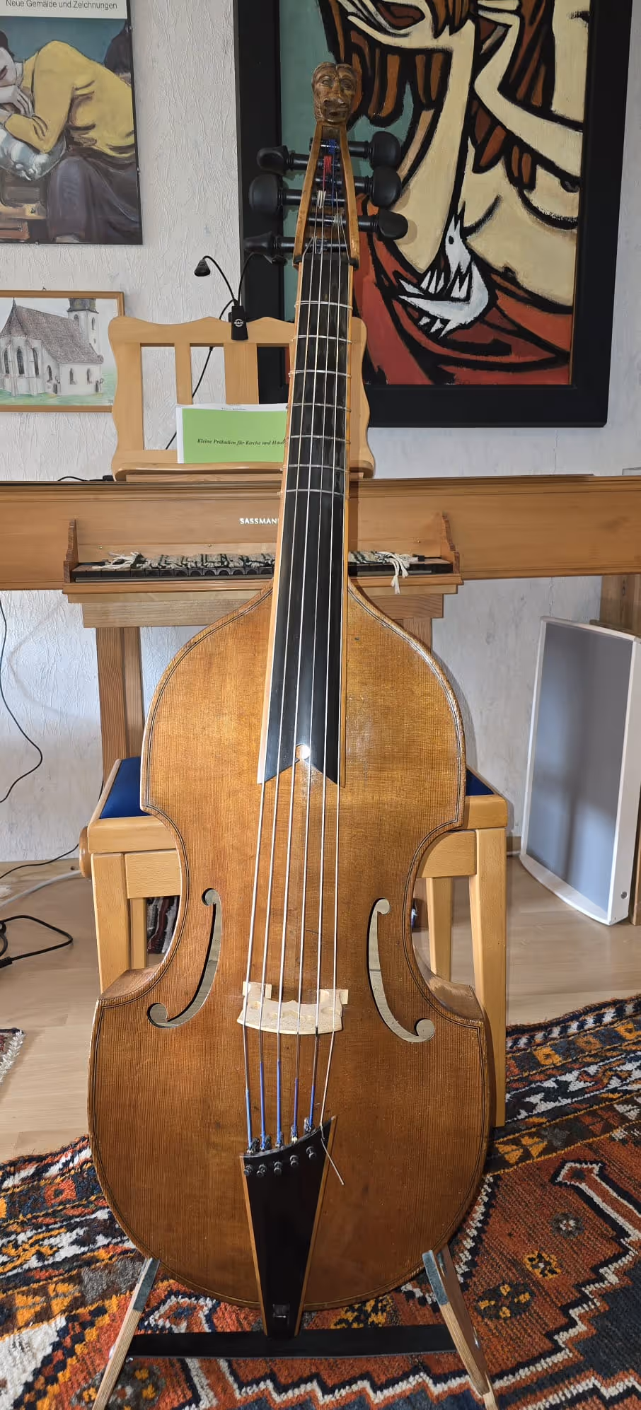 Biete einen handlichen, schön klingenden G- Violone zum Verkauf, den ich über 30 Jahre bei vielen Konzerten und Aufnahmen eingesetzt habe. Es ist ein Modell nach Busch, Vorbild im Museum in Nürnberg, Erbauer ist Hermann Bächle.